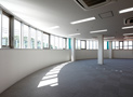 1階ショールームには、正面に大開口を設け、外部からも見えやすくし、2階・3階部分には、円形のカーテンウォールを設ける事により、迫力のあるモダンな外観としました。また3階部分は、可動間仕切壁により、用途に応じて空間を使い分けられるようにしました。 |